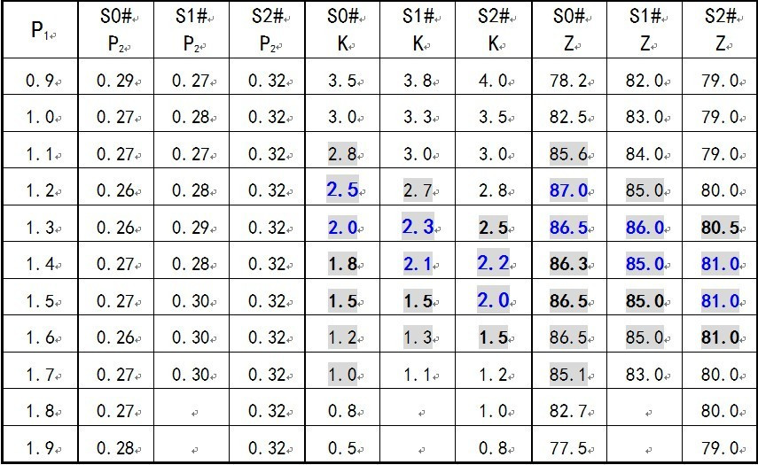 注:P1為進(jìn)口壓力(MPa);P2為出口壓力(MPa);K為主閥開(kāi)程(mm);Z為噪聲聲壓級(jí)(dB)。